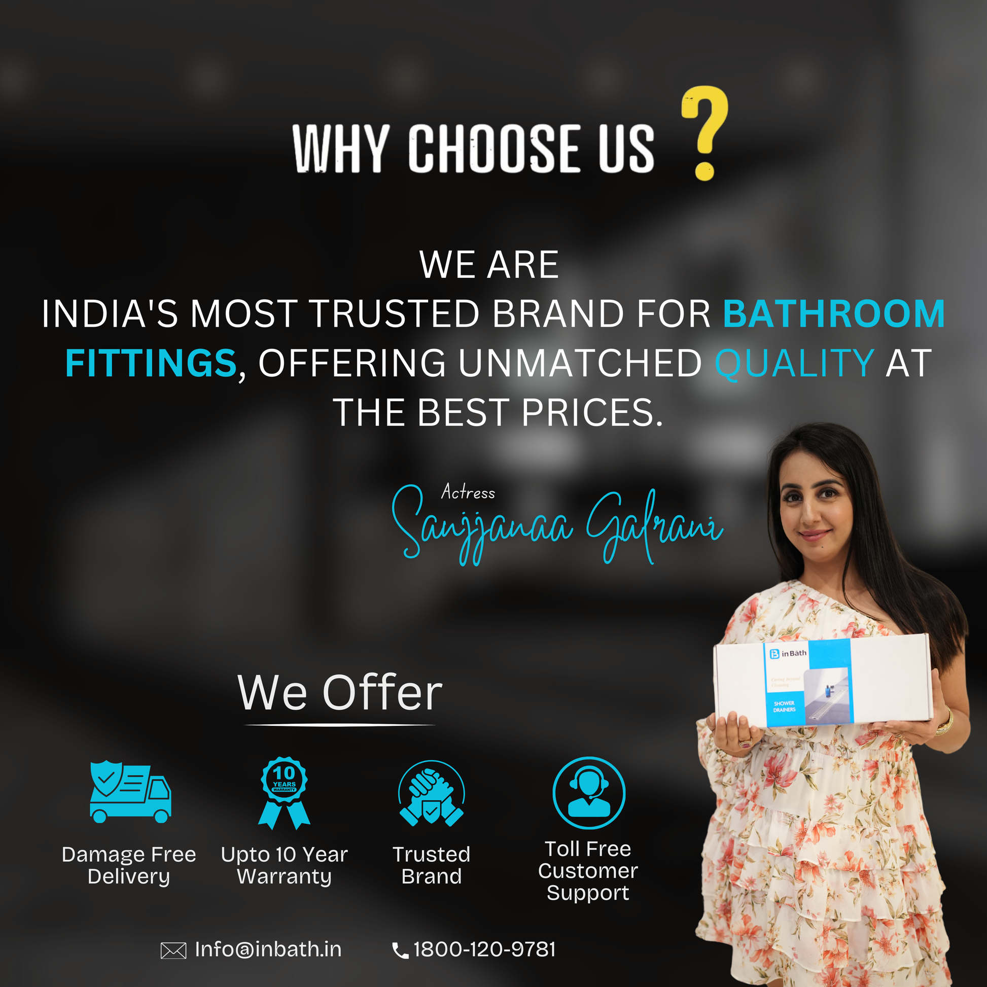 Yes. Most InBath products come with a manufacturer’s warranty against defects in materials or workmanship. Please retain your invoice and warranty card for service assistance. If you face any issue, reach out to our support team — we’ll guide you through the replacement or repair process promptly.